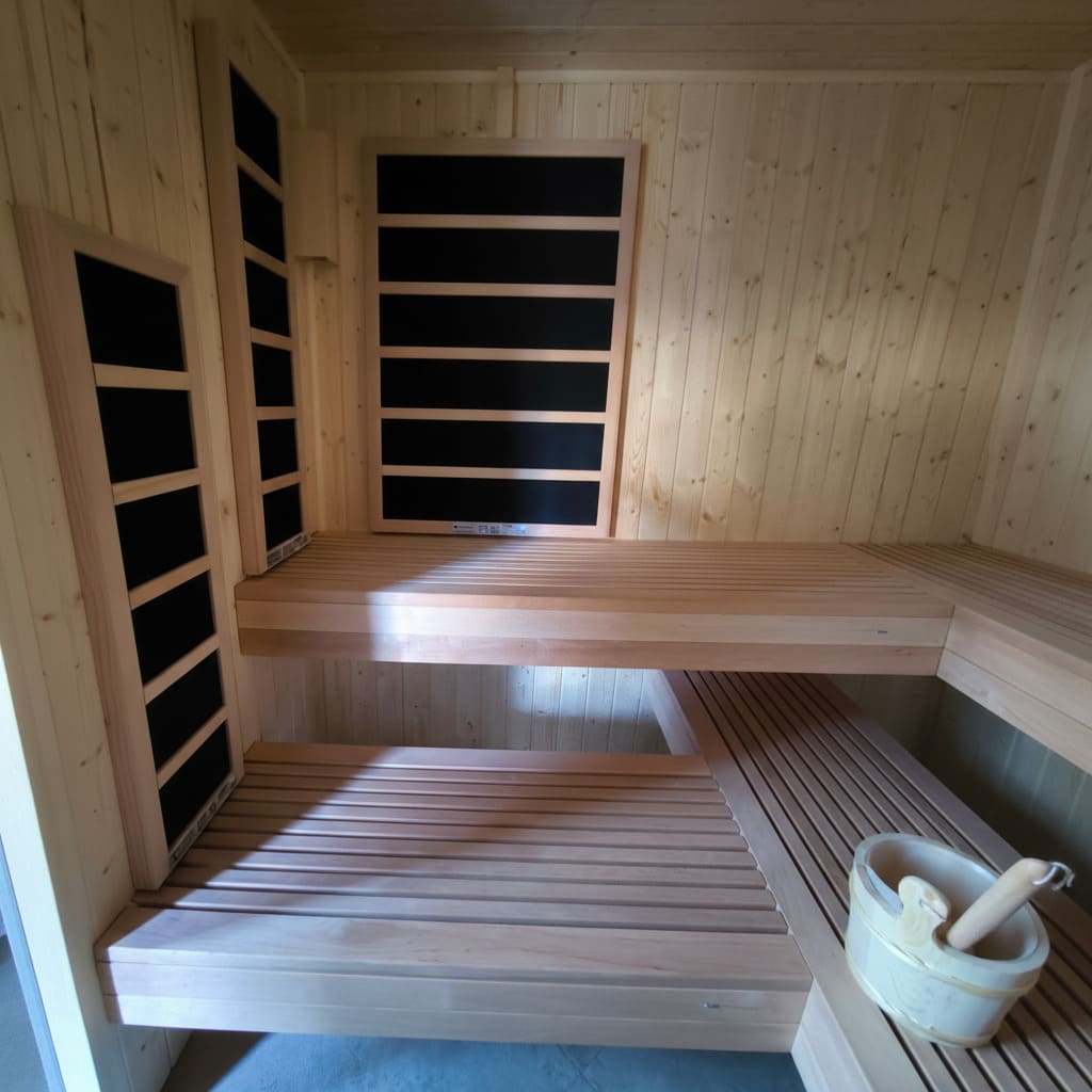 I Vantaggi della Sauna Combinata La combinazione di sauna finlandese e infrarossi offre un’esperienza wellness completa: il calore tradizionale favorisce la detossinazione profonda, mentre i raggi infrarossi forniscono benefici terapeutici mirati. Il risultato è una temperatura personalizzabile che si adatta a ogni esigenza di benessere.