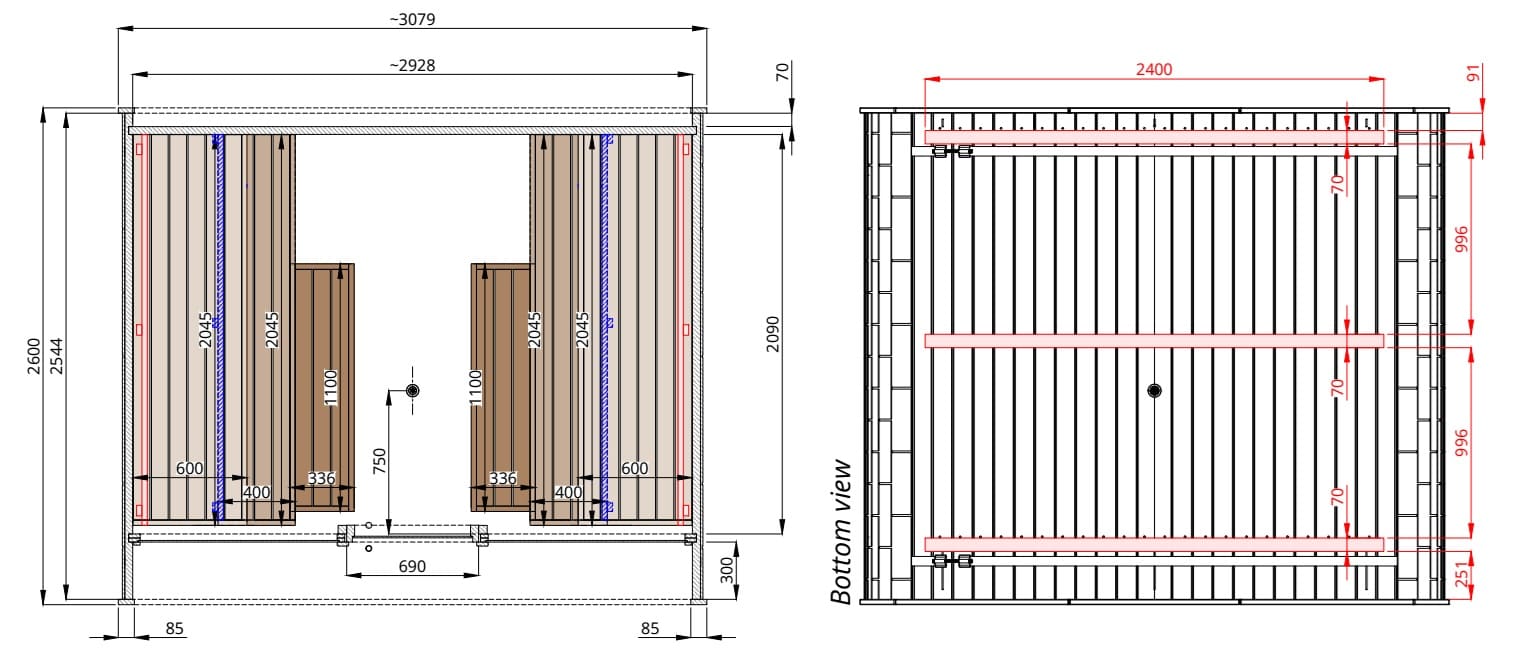 sauna da esterno round cube double interni 4