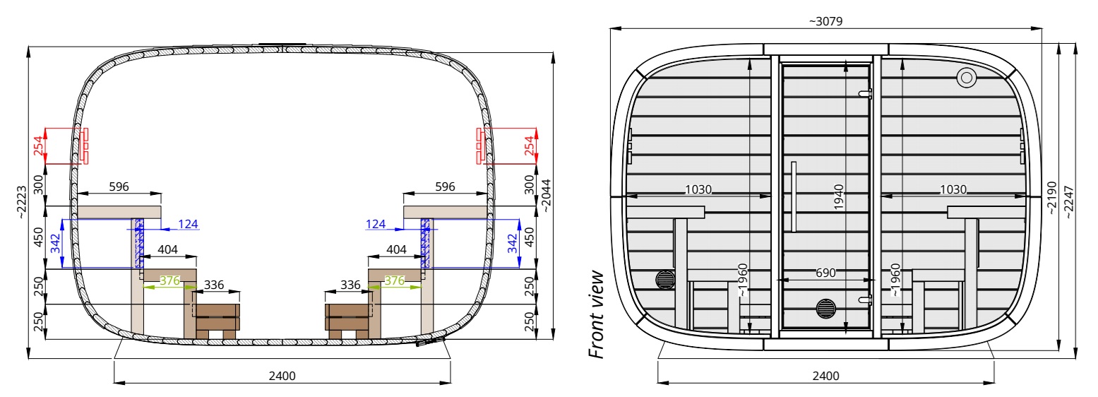 sauna da esterno round cube double interni 1